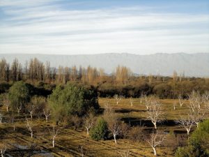 Nuestra base en este tramo será Sañogasta, una localidad ubicada en un valle entre dos cordones montañosos: el Famatina y el Velasco. Actualmente es un distrito del Departamento Chilecito, que cuenta con unos 1800 habitantes y su principal actividad económica son los sembradíos. En el pueblo y el entorno cercano encontramos muchas fincas, de diferentes tamaños, en las que se cultivan nogales, olivos y vides (entre otros plantíos menores). Dadas las características climáticas, las plantaciones necesitan de cuidados y riego permanentes para poder llegar a estándares de producción y rendimiento.