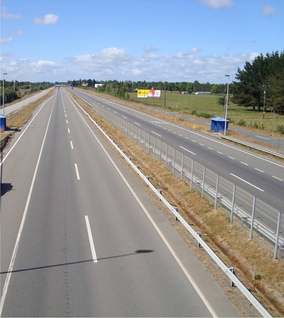 | Ruta 5 y paradas para transporte público (vista desde paso peatonal) |