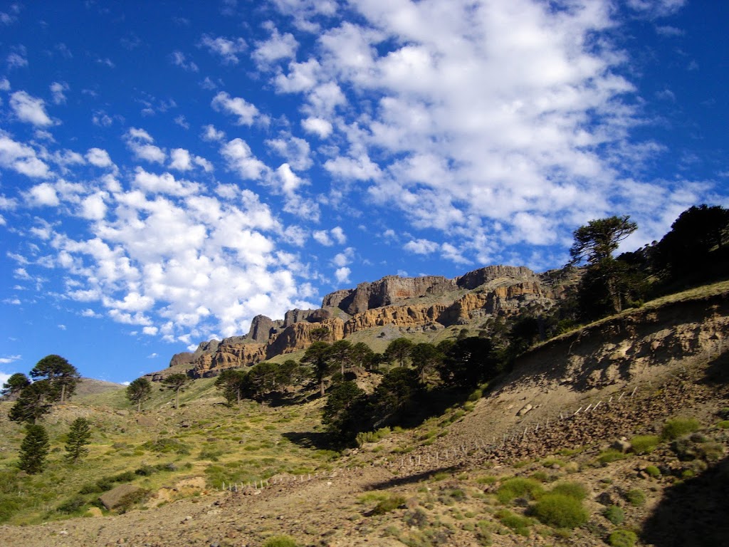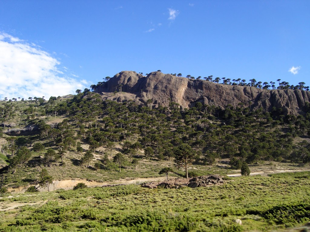 Luego de hacer aduana y migraciones en el lado chileno comenzamos a ascender la cordillera hacia el cruce. La ruta trepa, comenzado a seguir el río Pino Hachado por su ribera, hasta los 1884 m s.n.m., brindando paisajes que van pasando del frondoso verde del lado chileno hacia el seco y amarronado del lado argentino (principalmente provocado porque la cordillera «tapa» y recolecta toda el agua que el océano pacífico brinda con su humedad desde aquel lado).