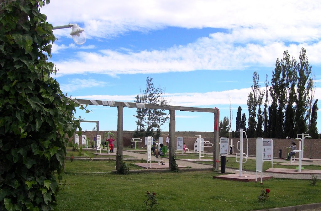 Después ingresar a Argentina y ya sobre la ruta 242 nos dirigimos hacia la localidad de «Las Lajas» luego de haber pasado -un poco antes- el desvío hacia «Villa Pehuenia» (localidad a la que iremos en algún momento, nos lo prometimos). Seguimos el camino por la ruta 242 para encontrar luego el empalme con la ruta 40 hacia la localidad de Zapala. En las cercanías de esta ciudad, sobre la ruta 40, cargamos combustible en una estación de servicio que nos llamó la atención pues contaba, en su parte posterior, con un amplio parque con juegos recreativos y saludables para niños y adultos.