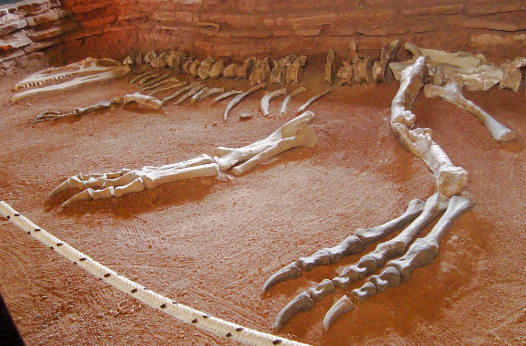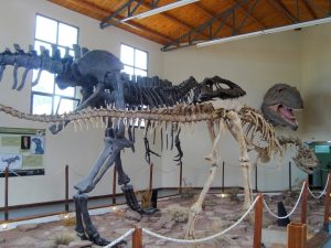 | Esqueleto con restos fósiles y reconstrucciones de los huesos faltantes del giganotosaurus carolinii |