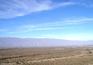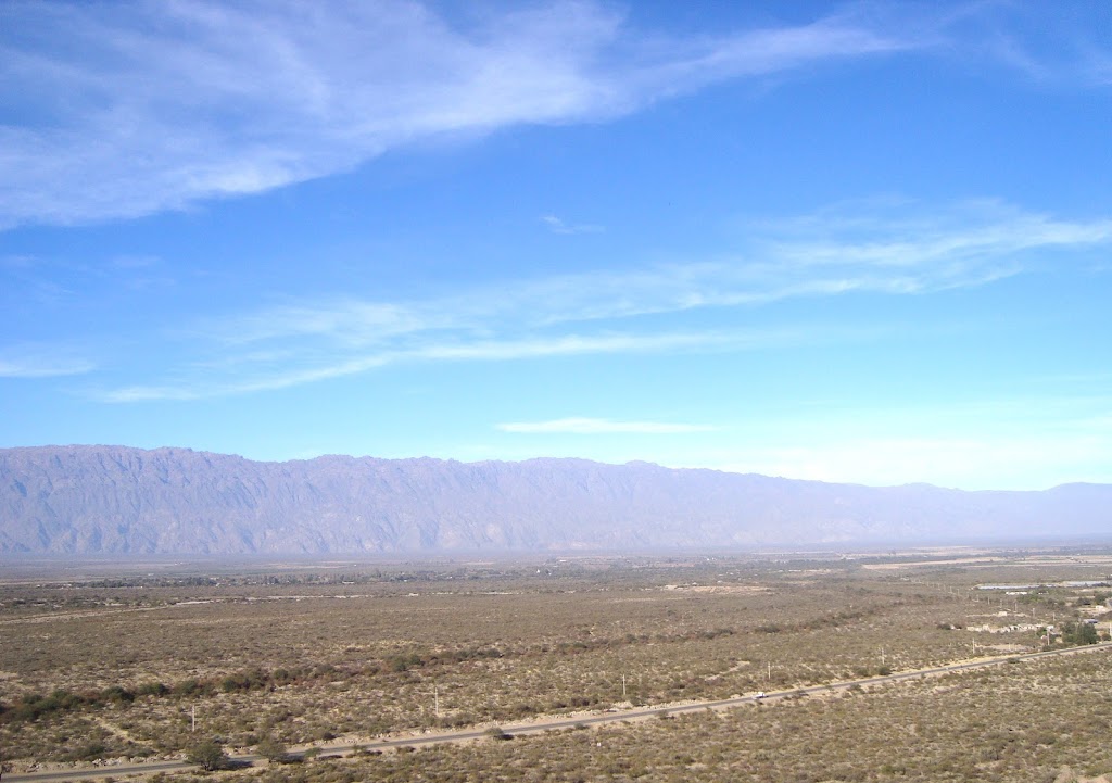 | Vista hacia las espaldas del Cristo de El Portezuelo Ruta 12 y la Sierra de Velazco (al fondo) |