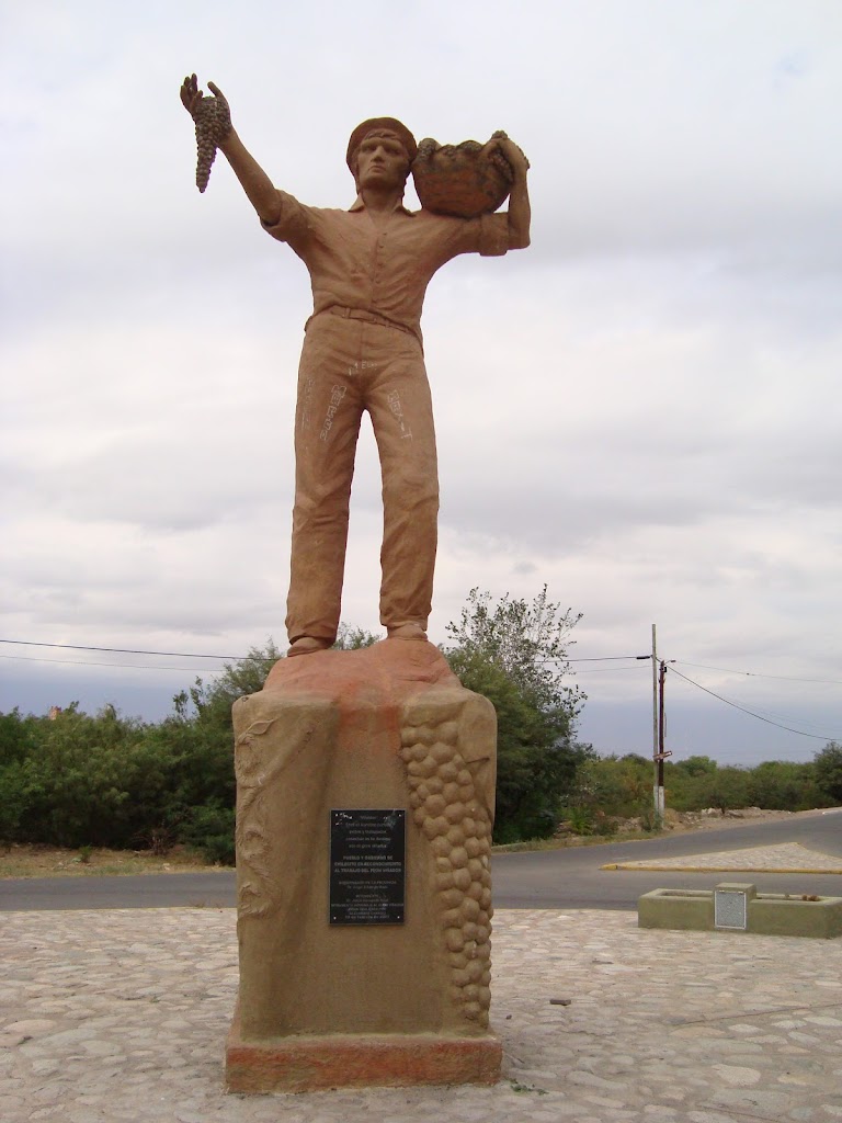 Antes de despedirnos de Chilecito, al salir de la bodega, después de haber comprendido la importancia de la actividad en la zona, decidimos visitar la estatua en honor al Viñador (persona que se encarga de la recolección manual de las uvas) que se encuentra en una zona cercana.