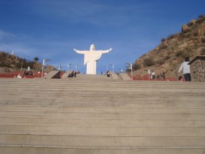 Para llegar al Cristo hay que sortear los 200 escalones que lo separan de su base que, precisamente, hacen alusión a los 200 años de la patria.